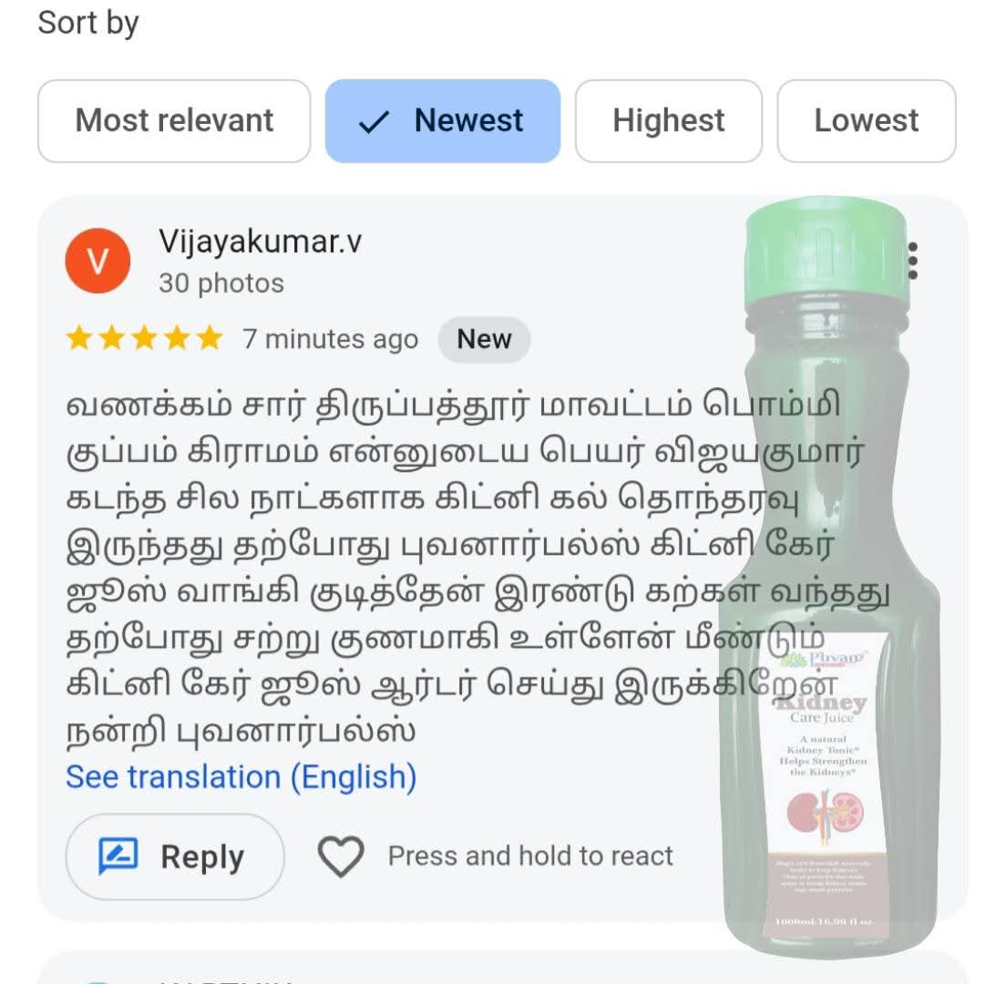 Kidney support supplement: Puvan Herbals kidney care juice helps assist kidney system functions naturally
