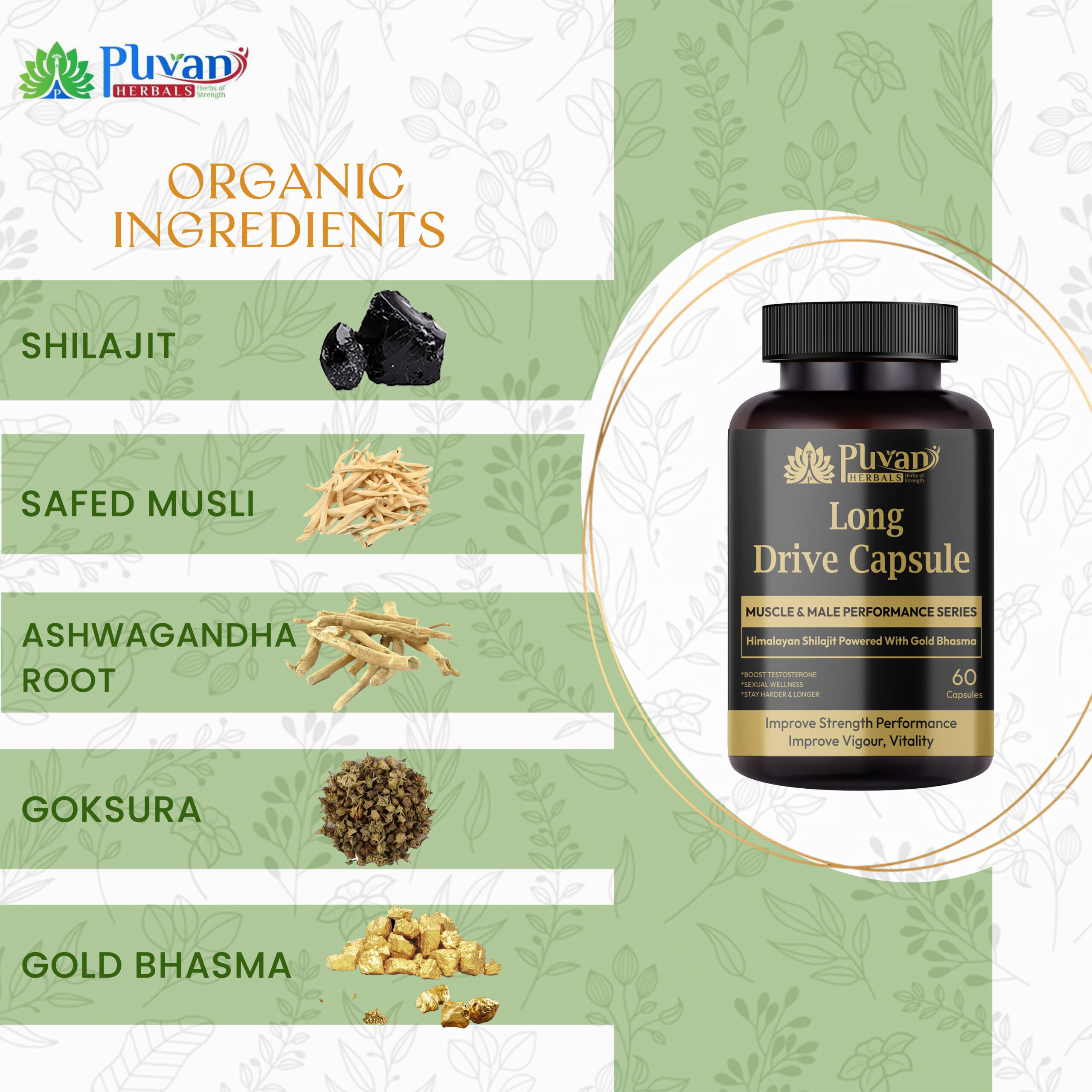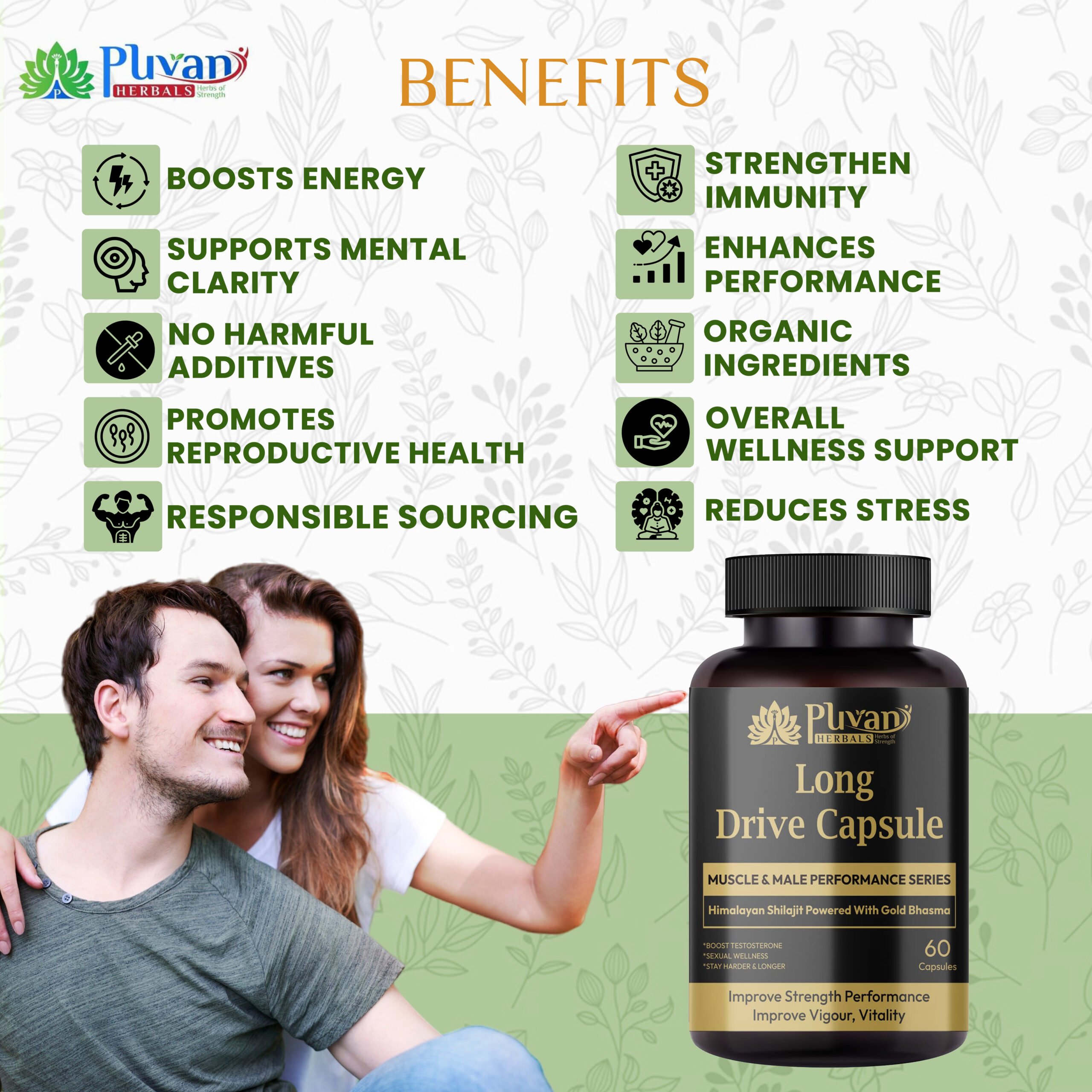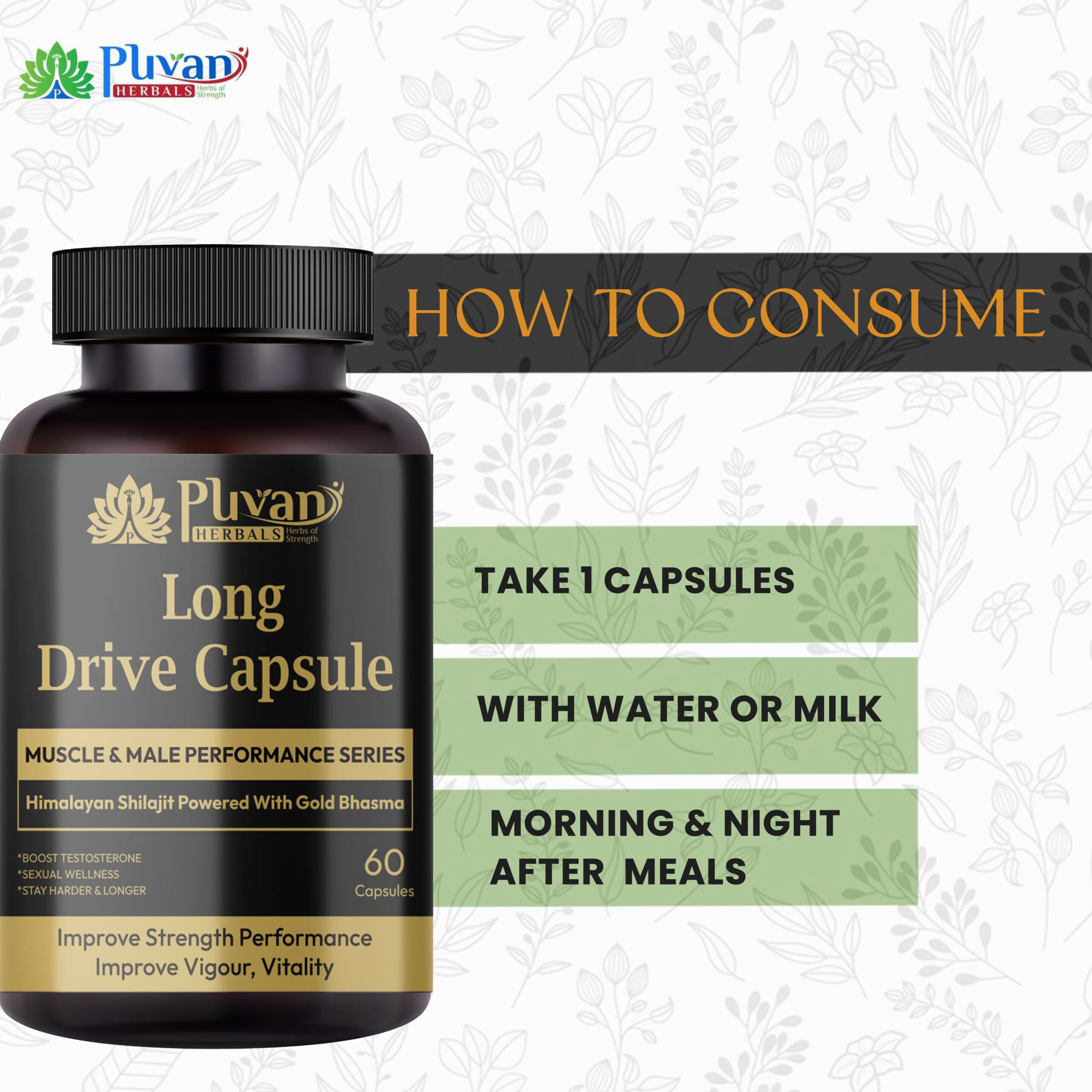 Puvan Herbals Long Drive Capsule Testosterone booster capsule with Shilajit and Gold BhasmaLong Drive Capsules for Male Strength Support