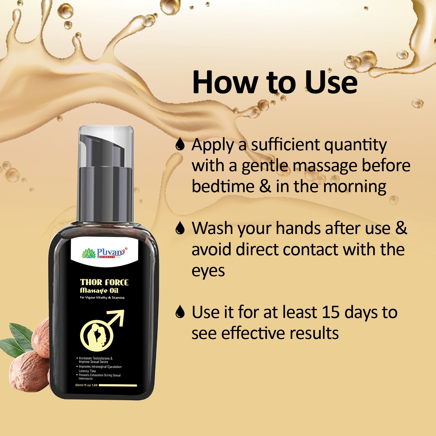 Thor Force Oil contains traditional herbs known in Ayurveda for supporting male wellness: